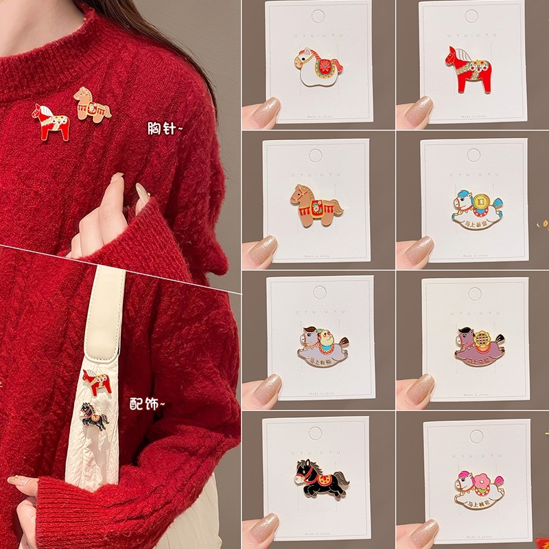 马年胸针2026新年本命年可爱卡通金属徽章包包衣服装饰品礼物批发