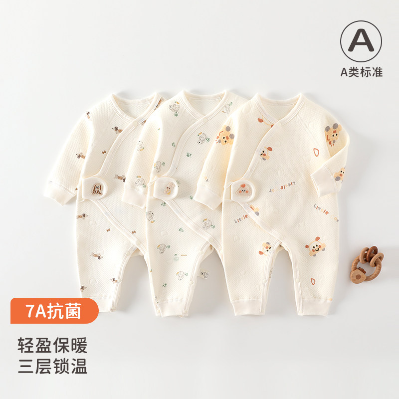婧麒新生儿婴儿衣服秋冬夹棉满月纯棉初生宝宝秋装连体衣a类爬服
