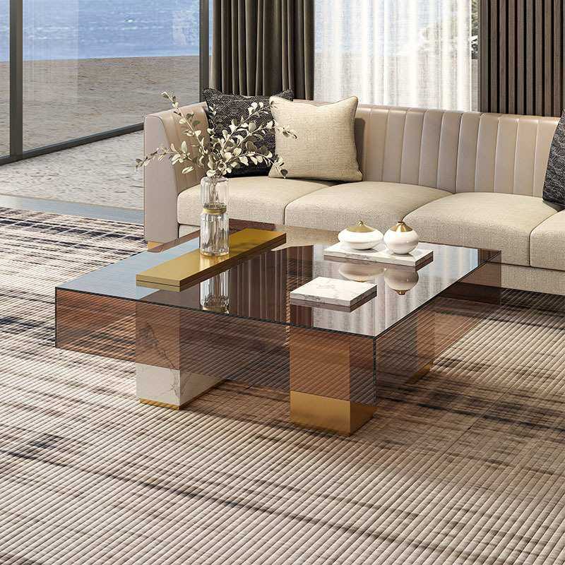意式极简轻奢茶几设计师不锈钢方形玻璃茶桌现代简约客厅高端家具