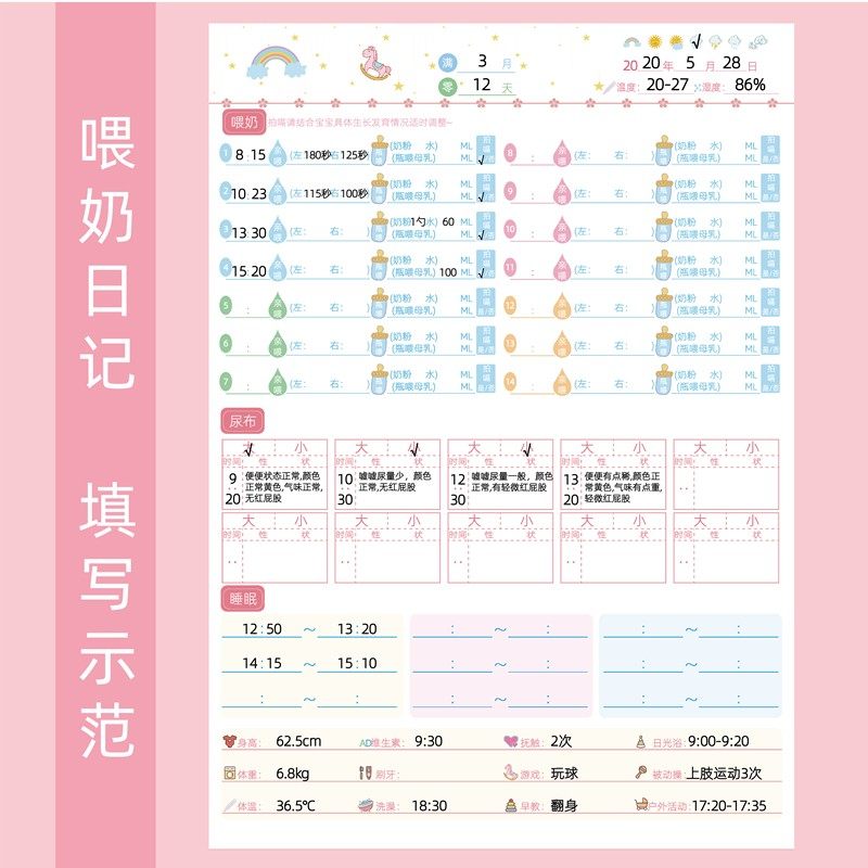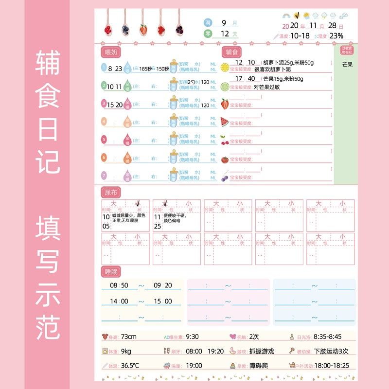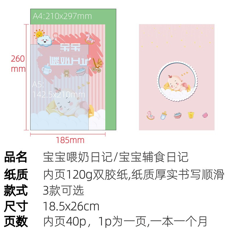 新手婴儿宝宝贝奶粉喂养母乳吃奶辅食成长记录日记本手册账笔记本