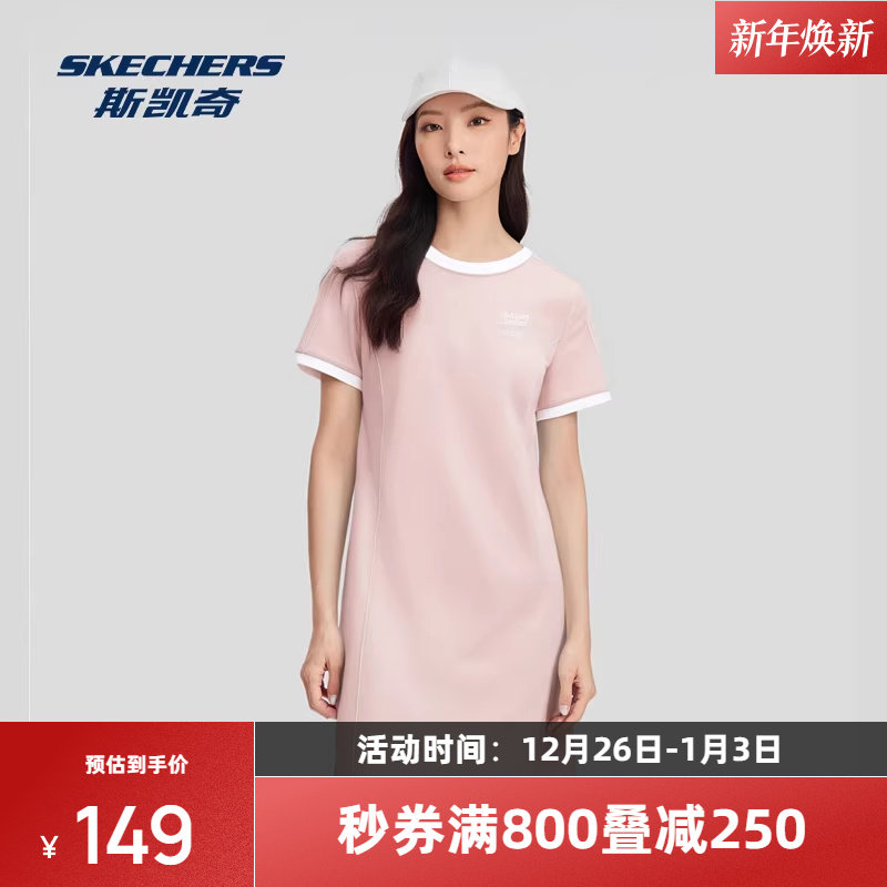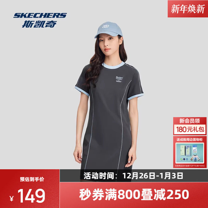 斯凯奇2025新品女士双层针织连衣裙吸湿速干舒适撞休闲百搭