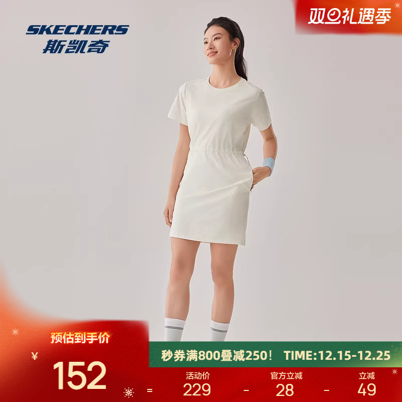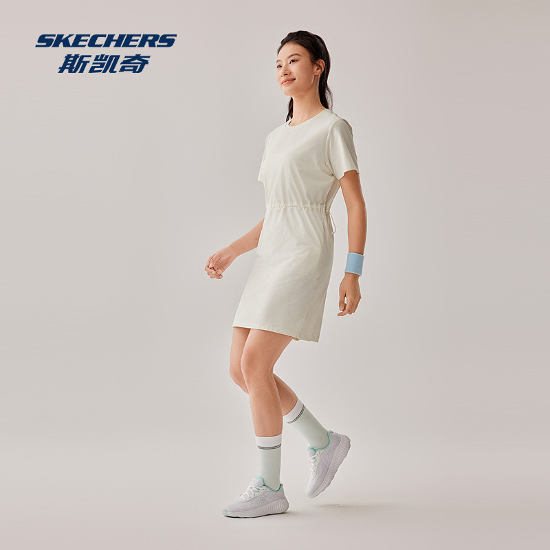 斯凯奇2025新品女款运动连衣裙针织连衣涤仿棉面料