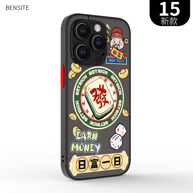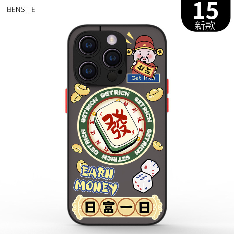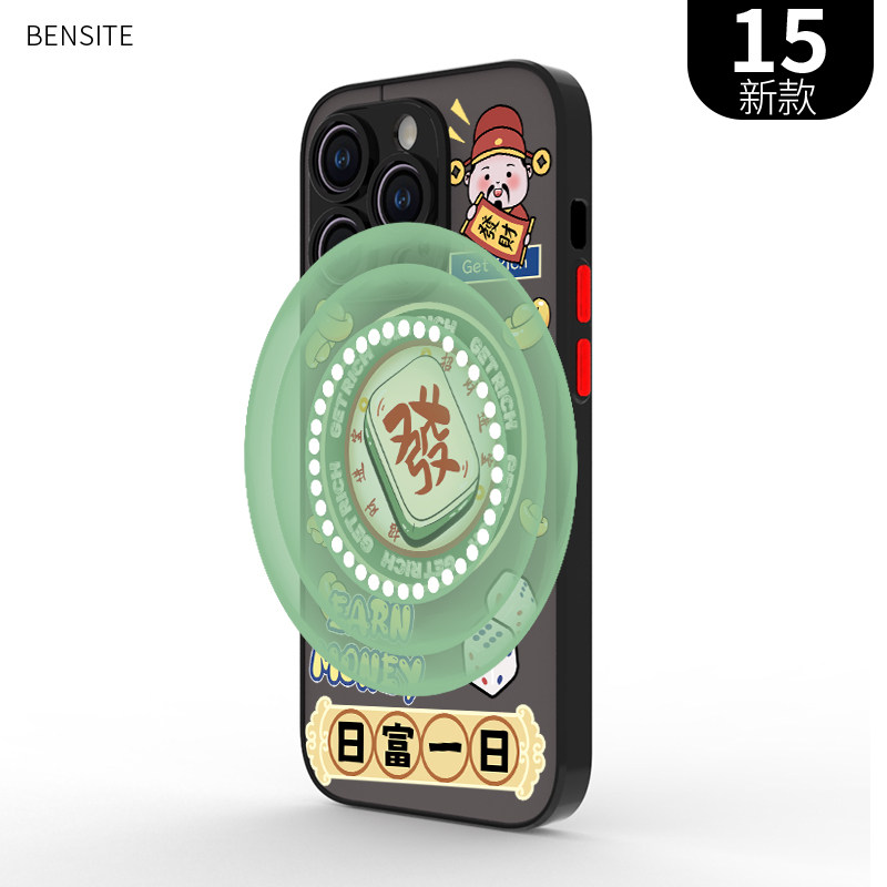 适用于iphone12mini肤感磁吸14新年喜庆magsafe手机壳15plus磨砂se日富一日13max全包17air防摔16pro麻将發11