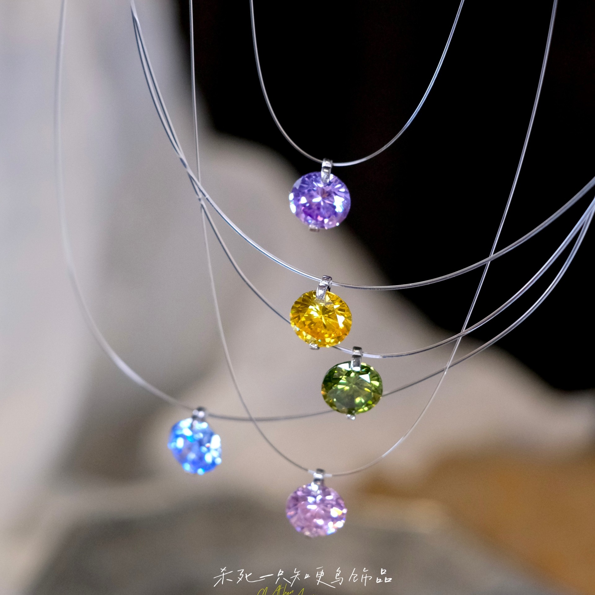 《人鱼之泪》爆闪!s925纯银轻奢隐形鱼线四爪彩色锆石项链锁骨链