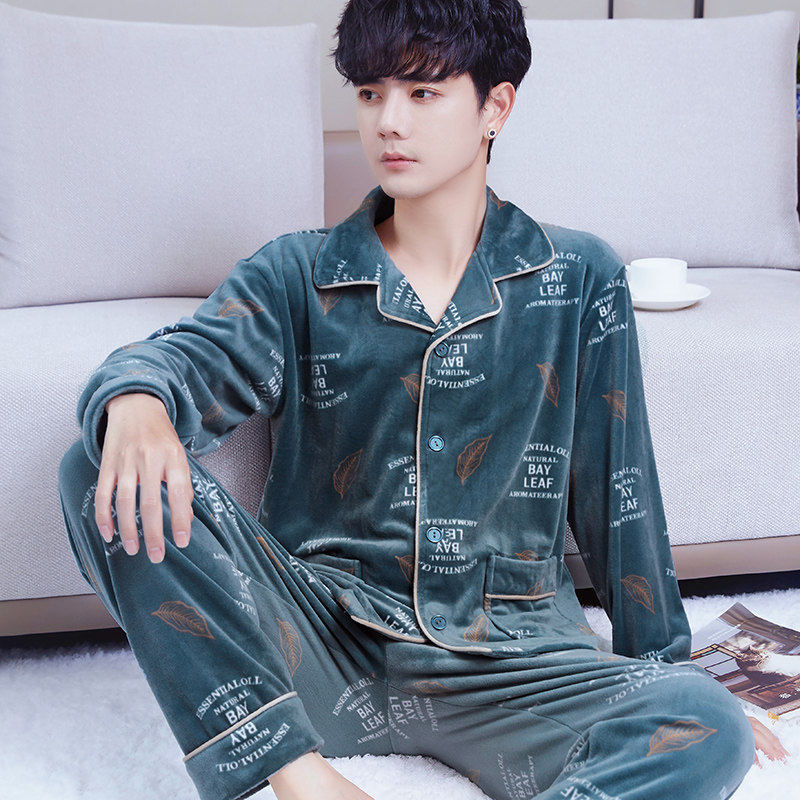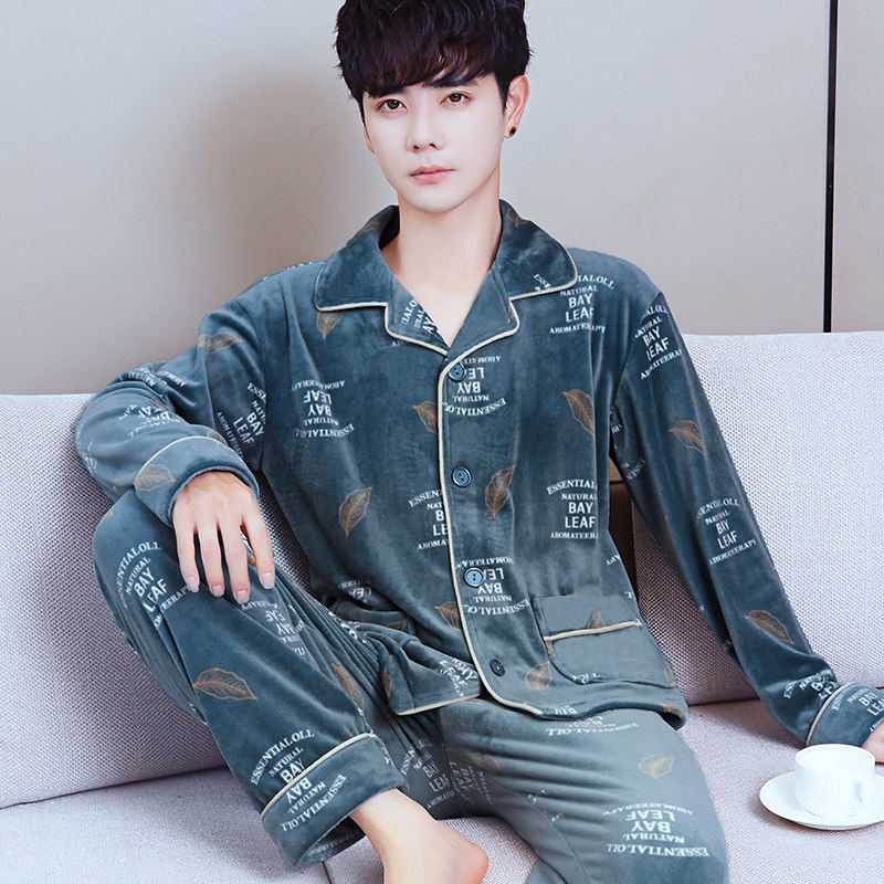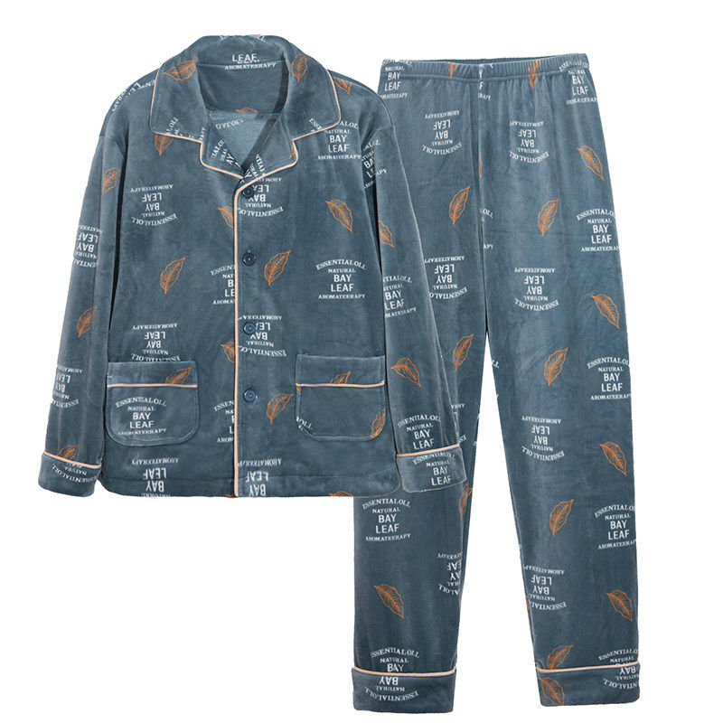 冬季珊瑚绒男士睡衣三层夹棉加厚加绒法兰绒秋冬款家居服保暖套装