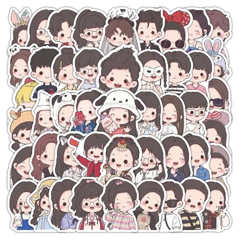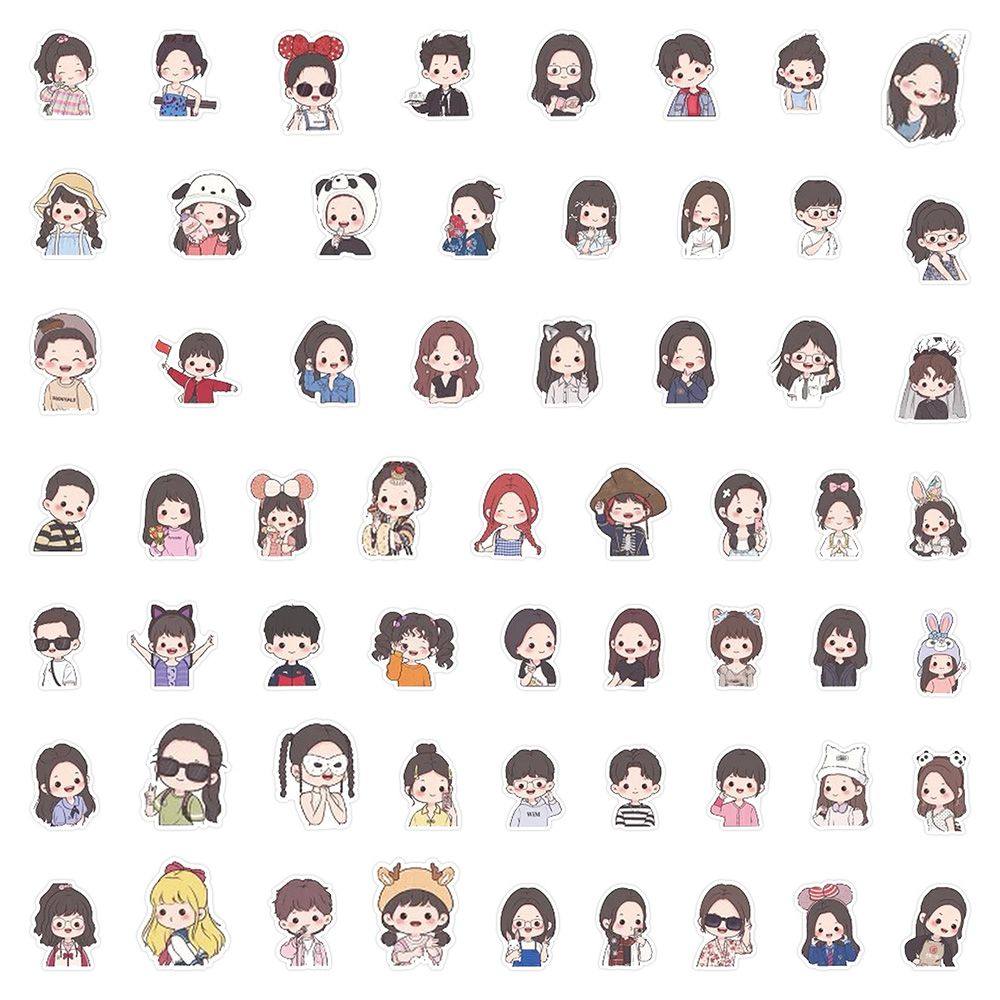 【大图释官方授权】120张情侣头像可爱卡通防水diy自粘标签贴纸创意男孩女孩表情动画手机壳水杯书本装饰贴画