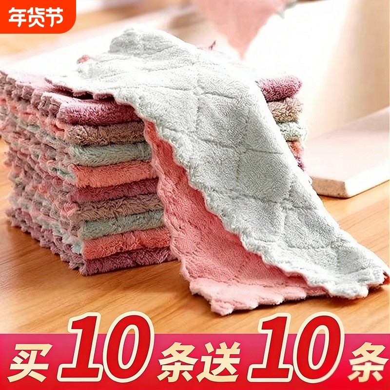 厨房抹布专用洗碗布加厚纯棉小方巾吸水不掉毛珊瑚绒洗碗帕不沾油