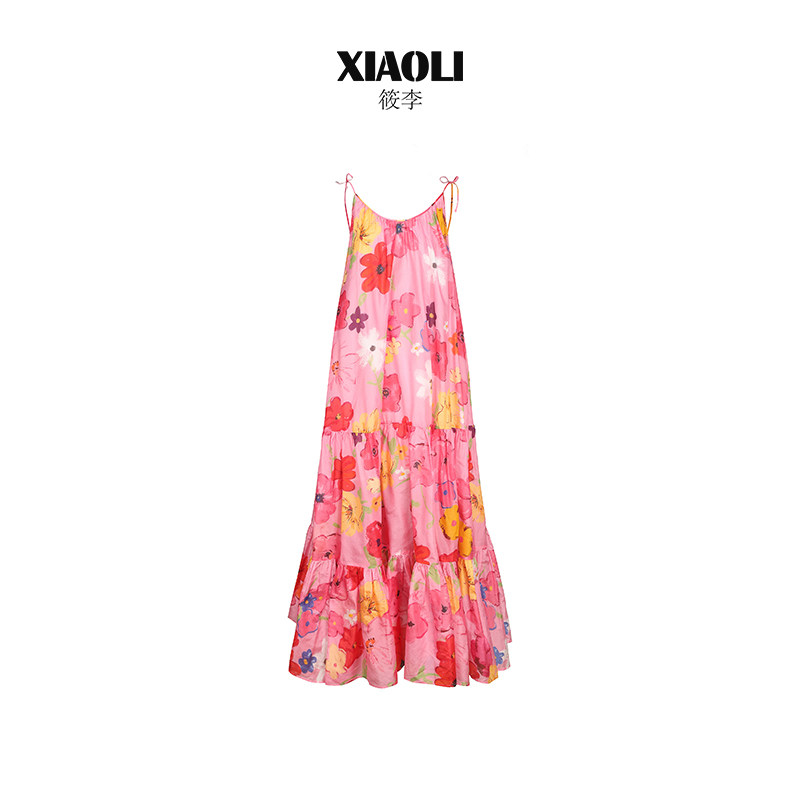 【papi同款】半练带胸垫吊带裙纯欲气质挂脖连衣裙黑裙子粉色长裙