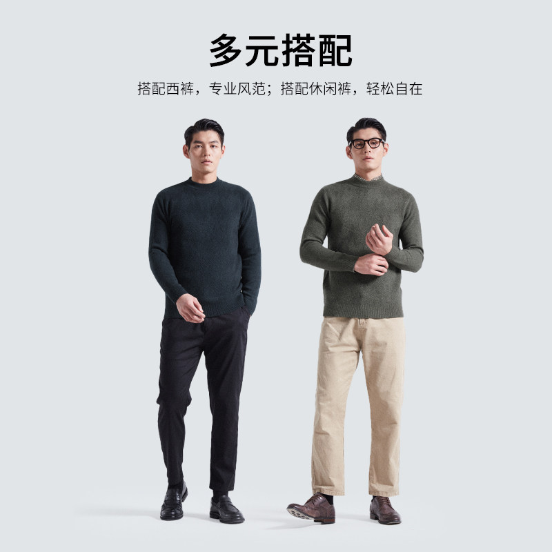 鄂尔多斯市半高领100%纯羊毛衫男休闲中厚保暖毛衣针织打底羊绒衫