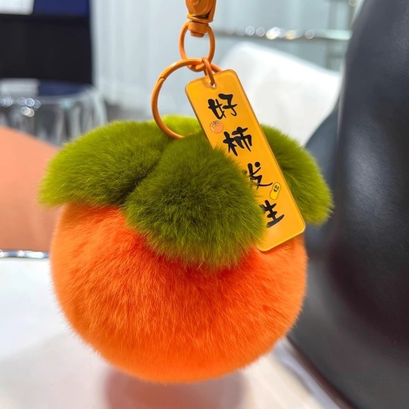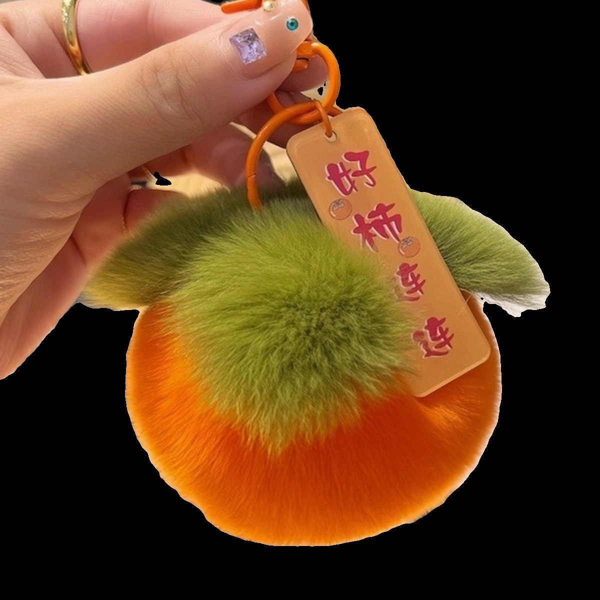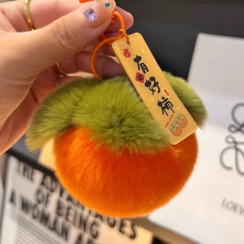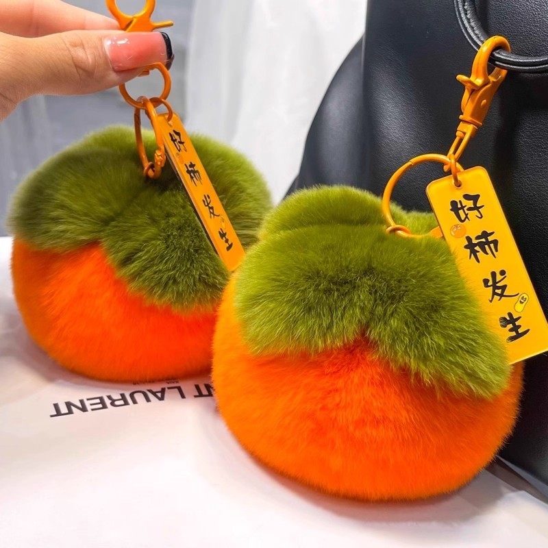 小柿子车钥匙扣挂件毛绒钥匙链情侣礼物好事发生真獭兔毛手机挂饰