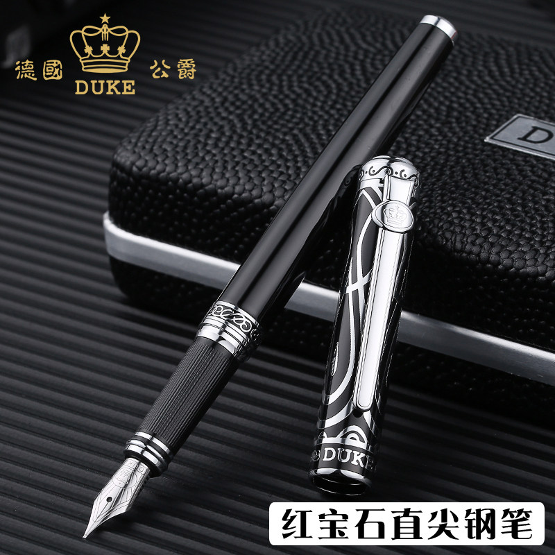 公爵钢笔吸墨铱金笔蓝宝石红宝石男女生送礼学生书写练字刻字定制