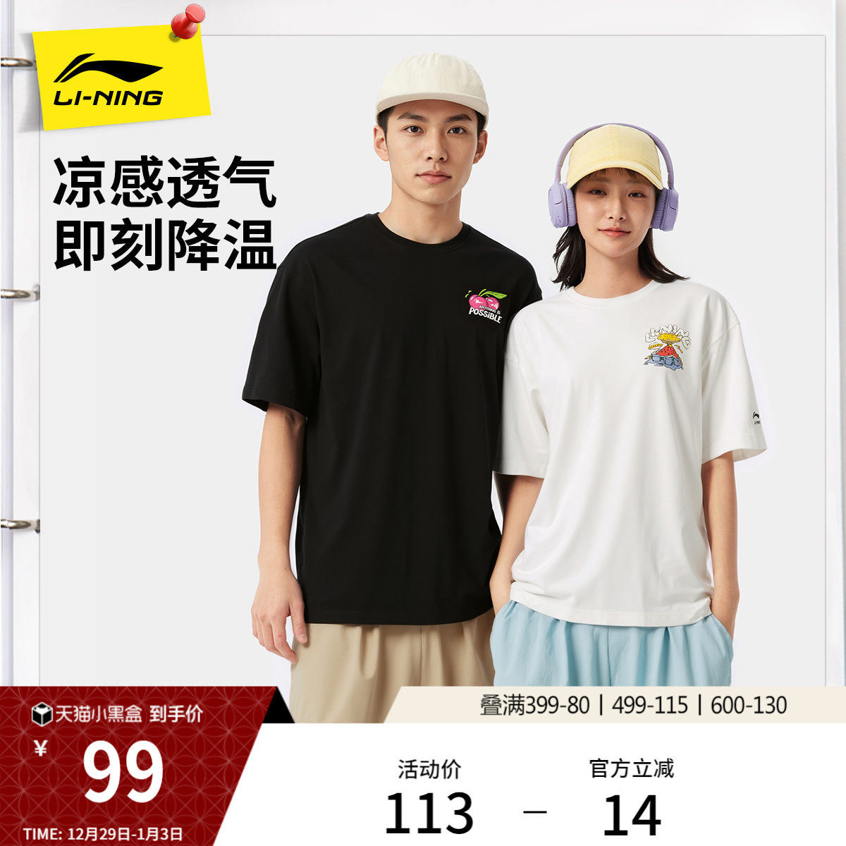 李宁短袖男士夏季官方新款情侣半袖休闲印花T恤女凉感上衣运动服