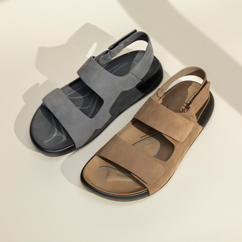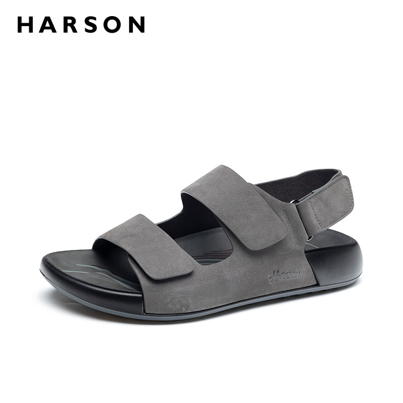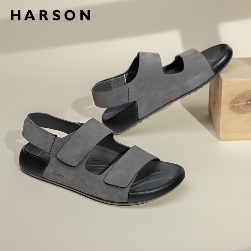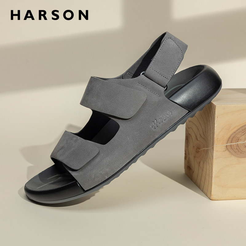 哈森夏季男鞋新款真皮凉鞋透气大头男士厚底勃肯鞋软底沙滩鞋外穿