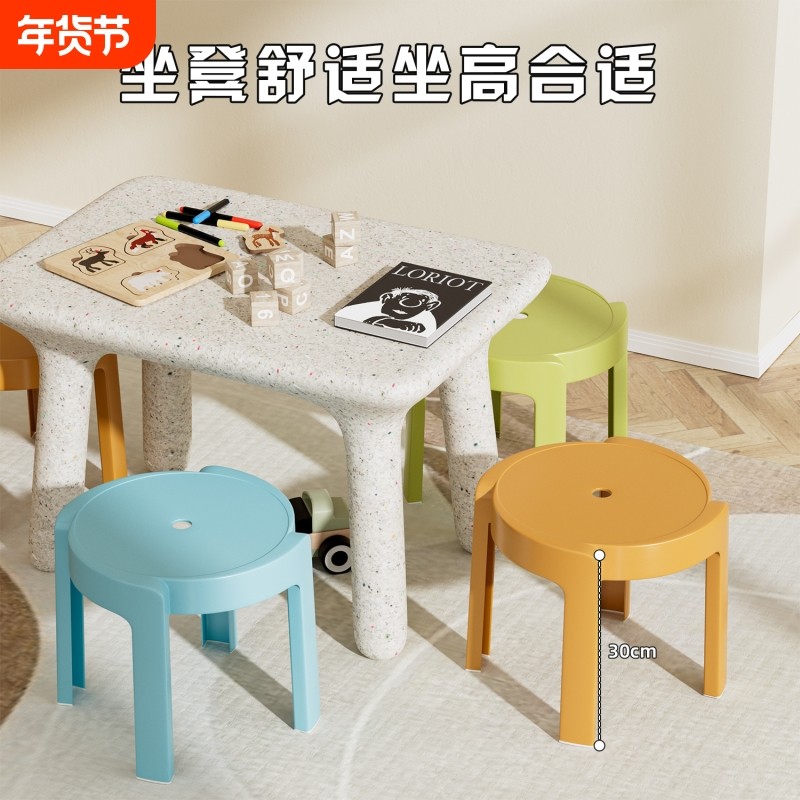 浴室小凳子家用加厚儿童椅子成人圆板凳可叠放风车凳塑料防滑矮凳