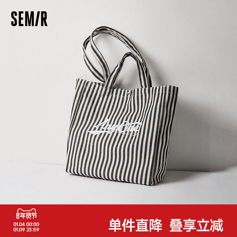 森马包包帆布袋女2024新款时尚撞色条纹单肩包大容量手提包氛围感