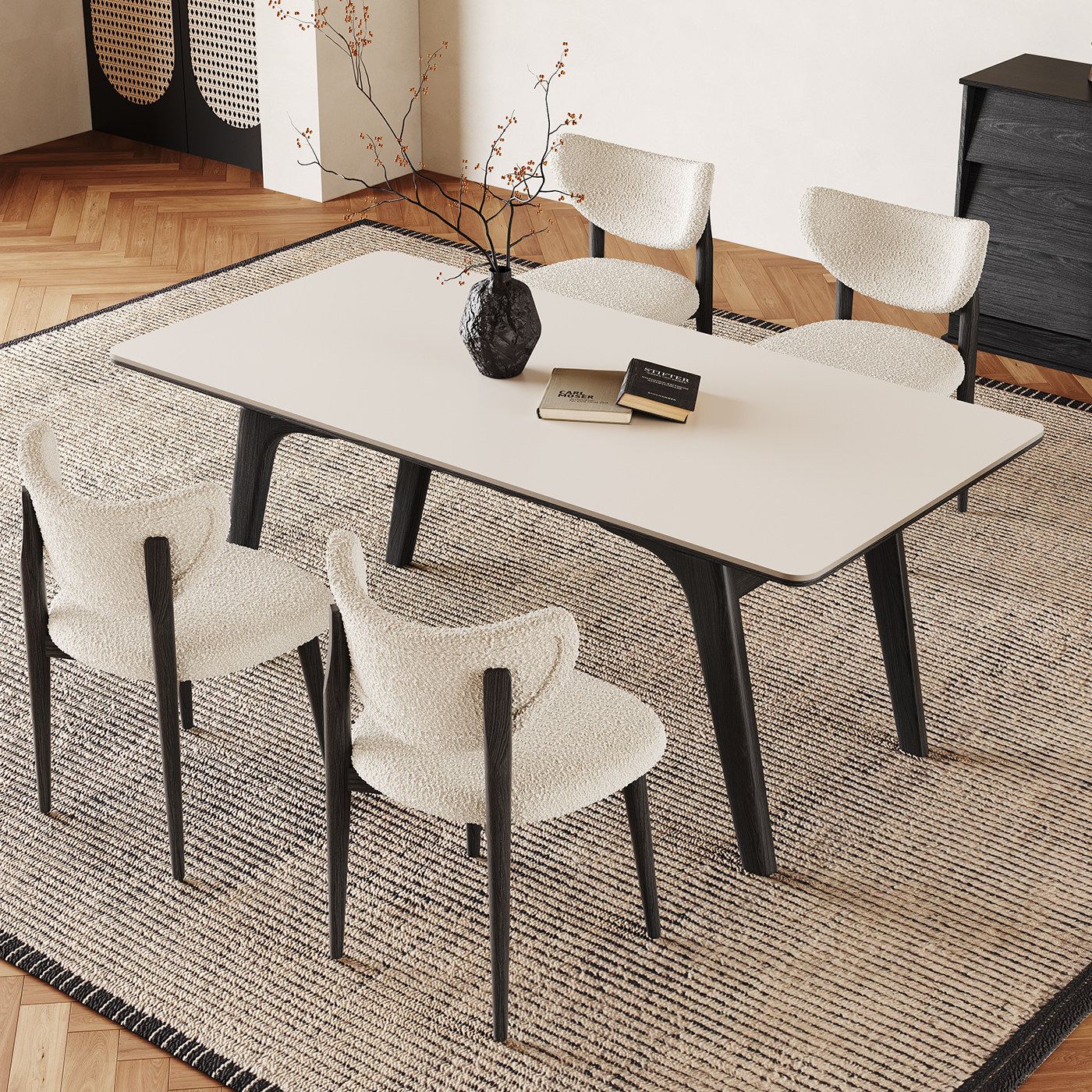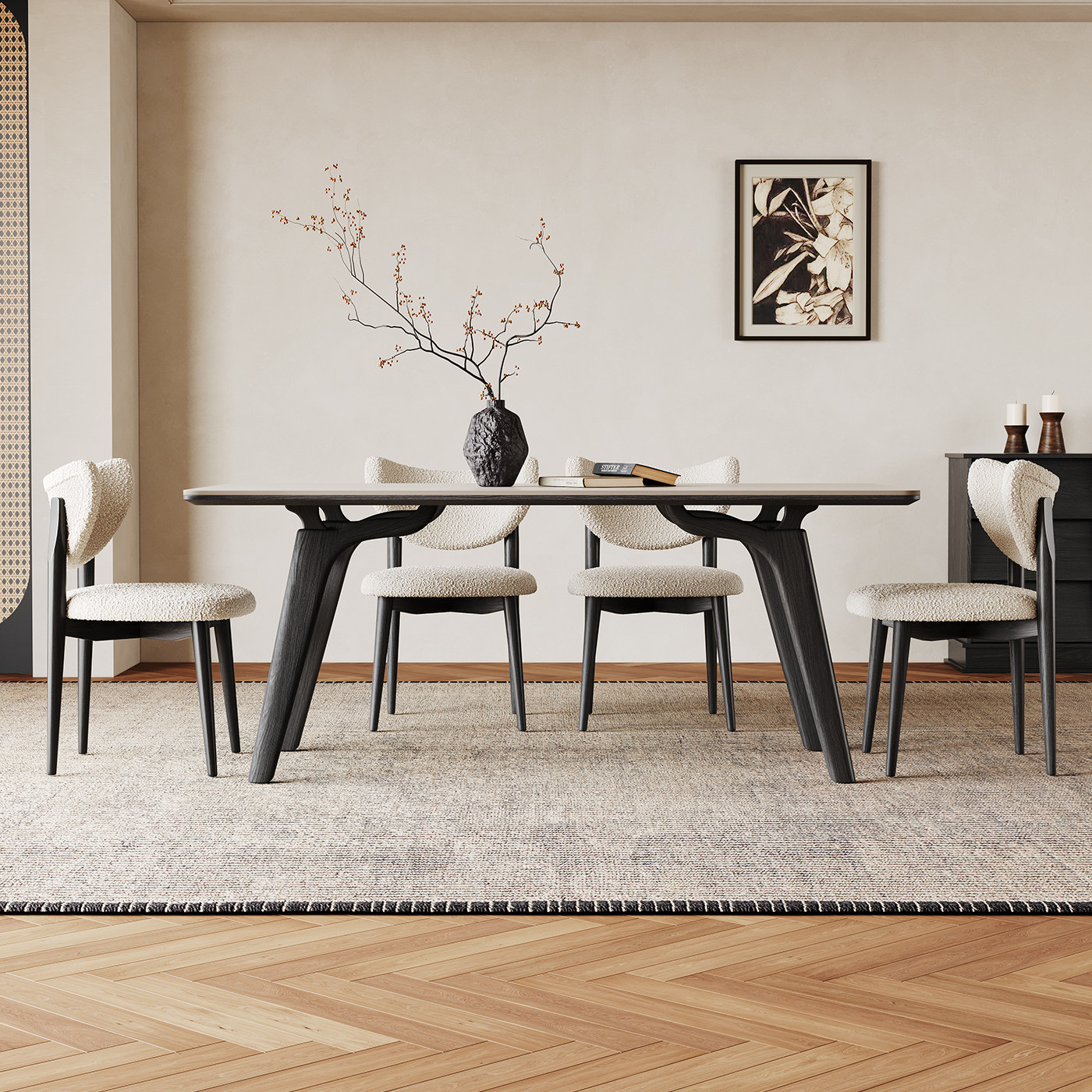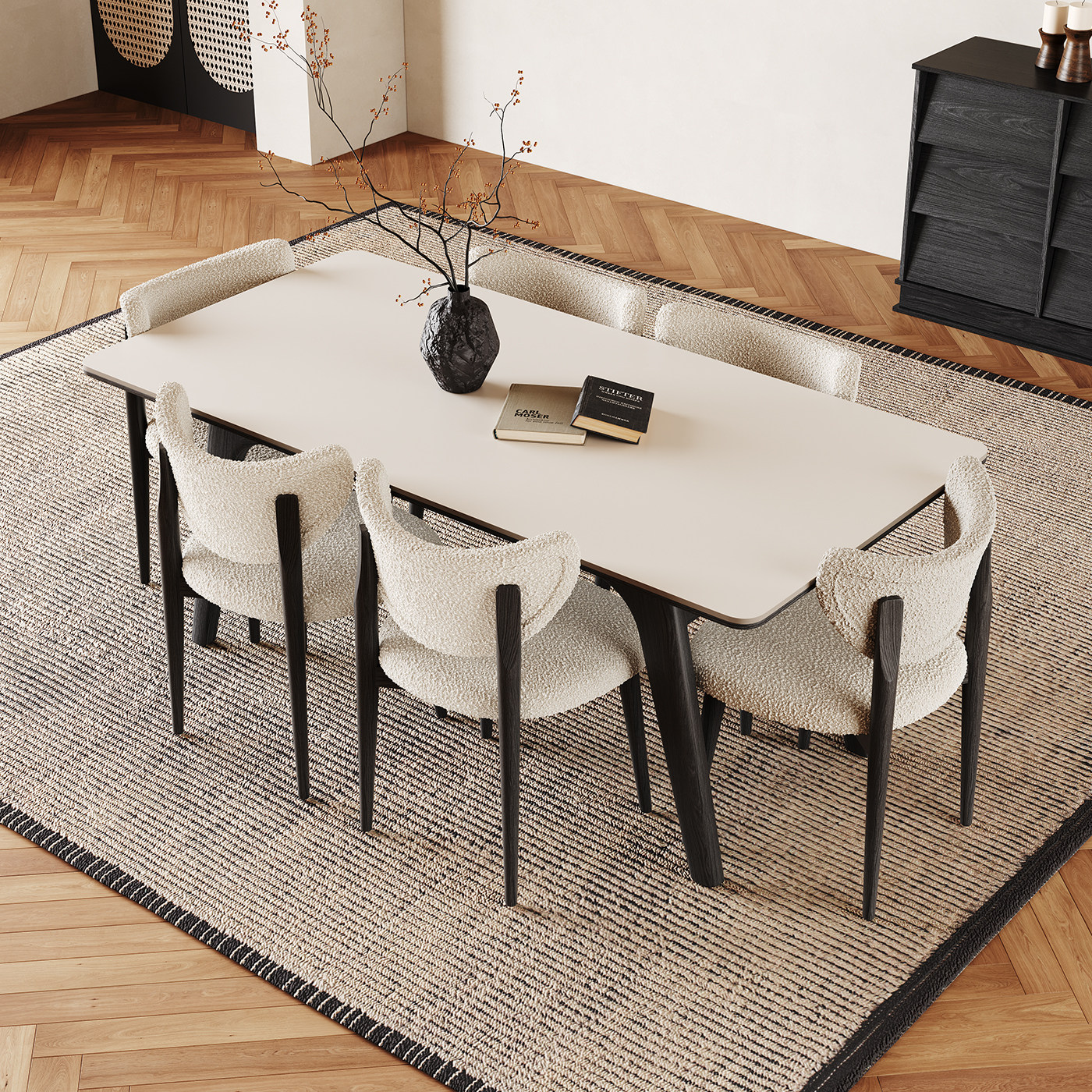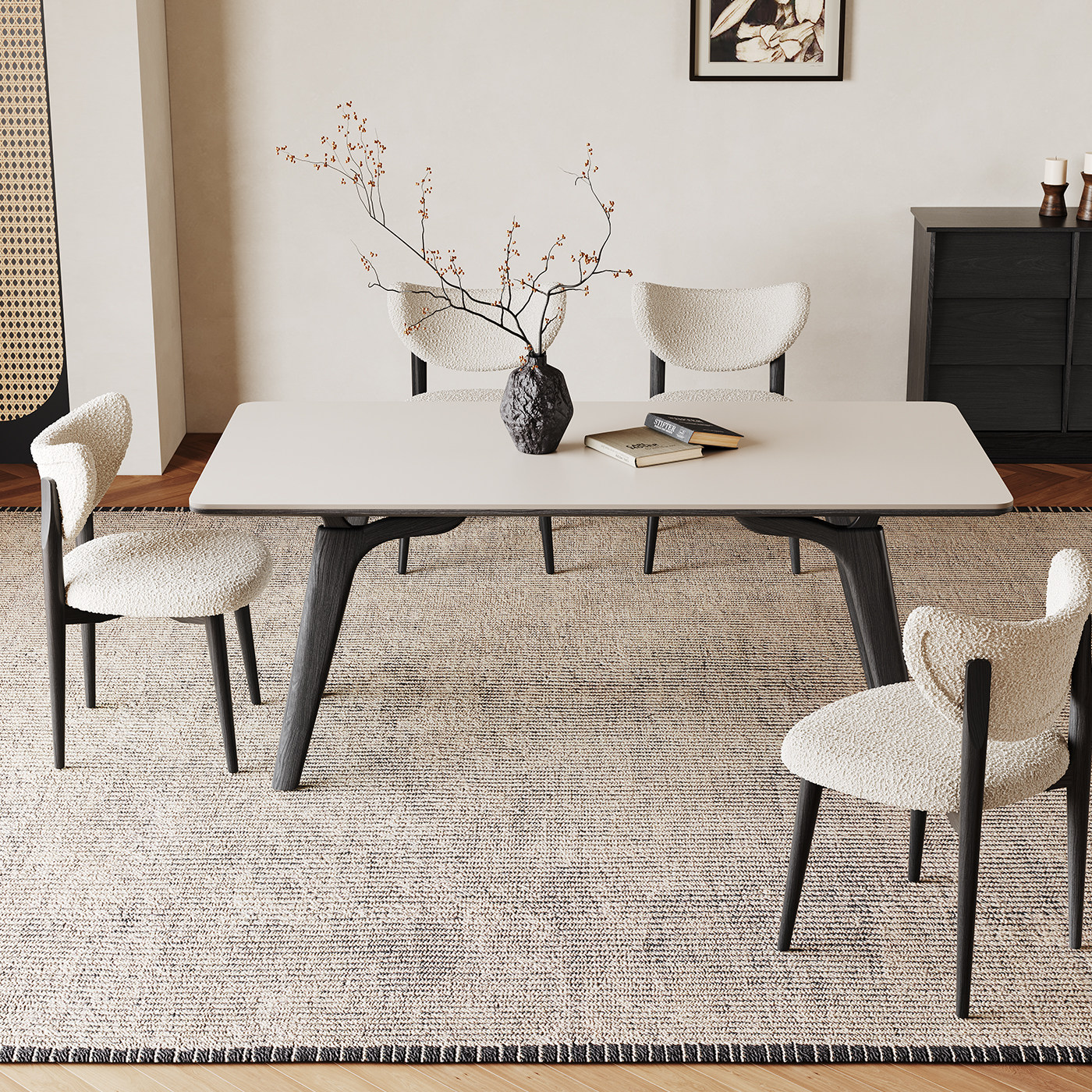 奥古斯特 纯白岩板餐桌家用高端意式轻奢长方形法式复古实木餐桌
