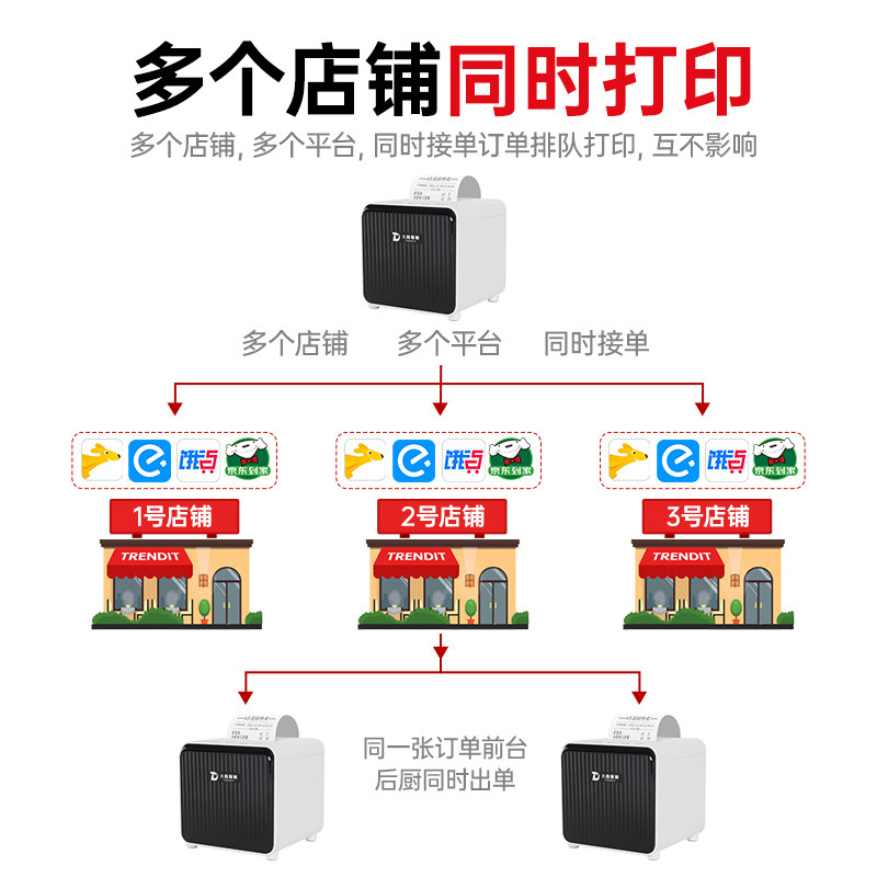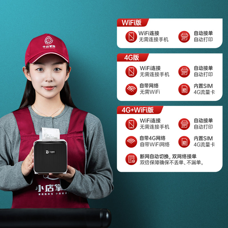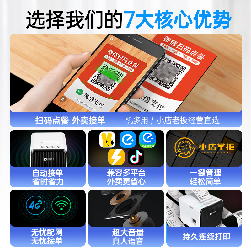 大趋P7外卖打印机适用美团饿了么多平台全自动接单餐饮商家订单4G云打印机真人语音WIFI无线蓝牙出单机小票机