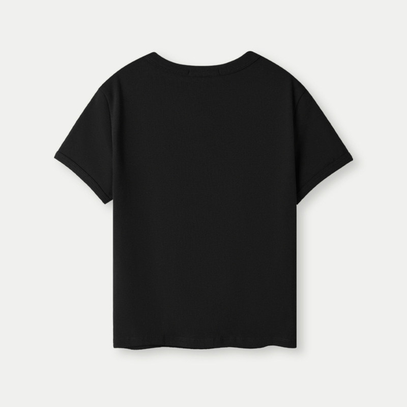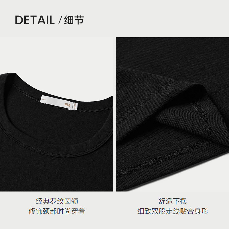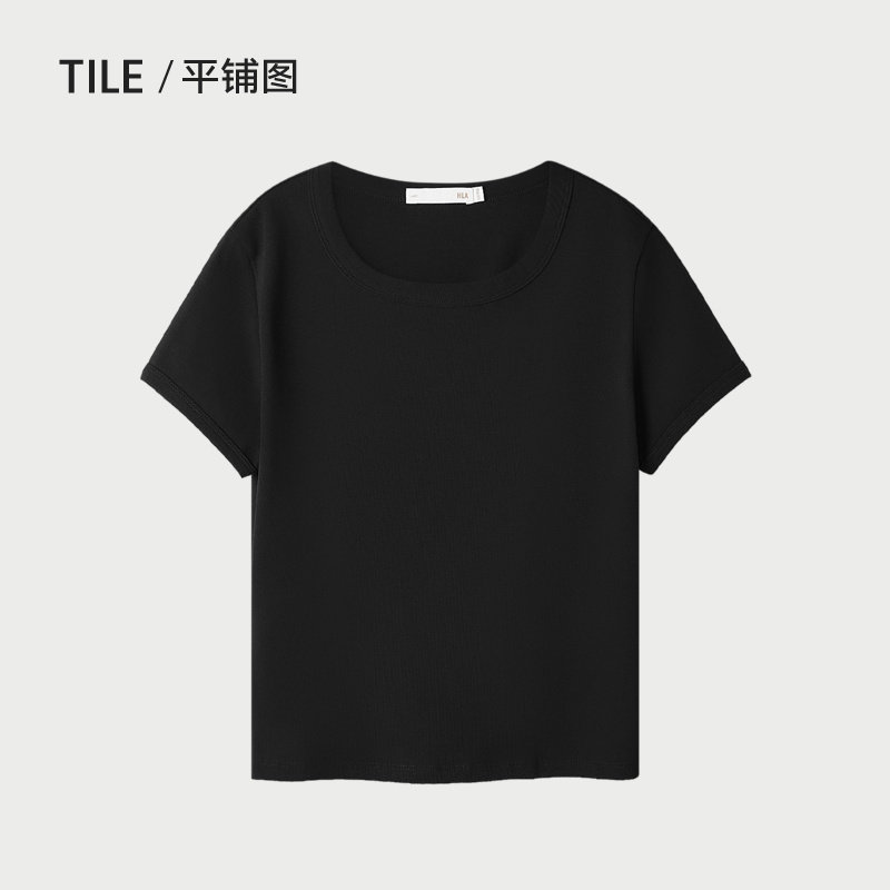 HLA/海澜之家时尚短袖T恤2025春夏季新款圆领黑色微弹直筒短t女装