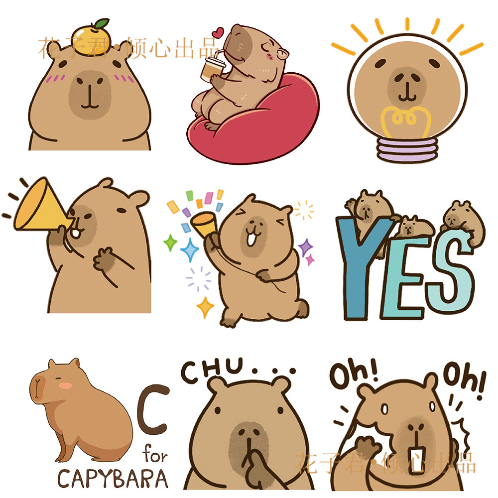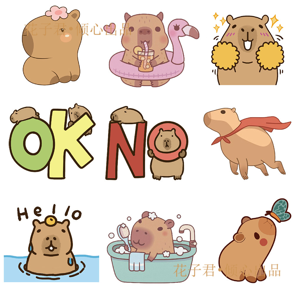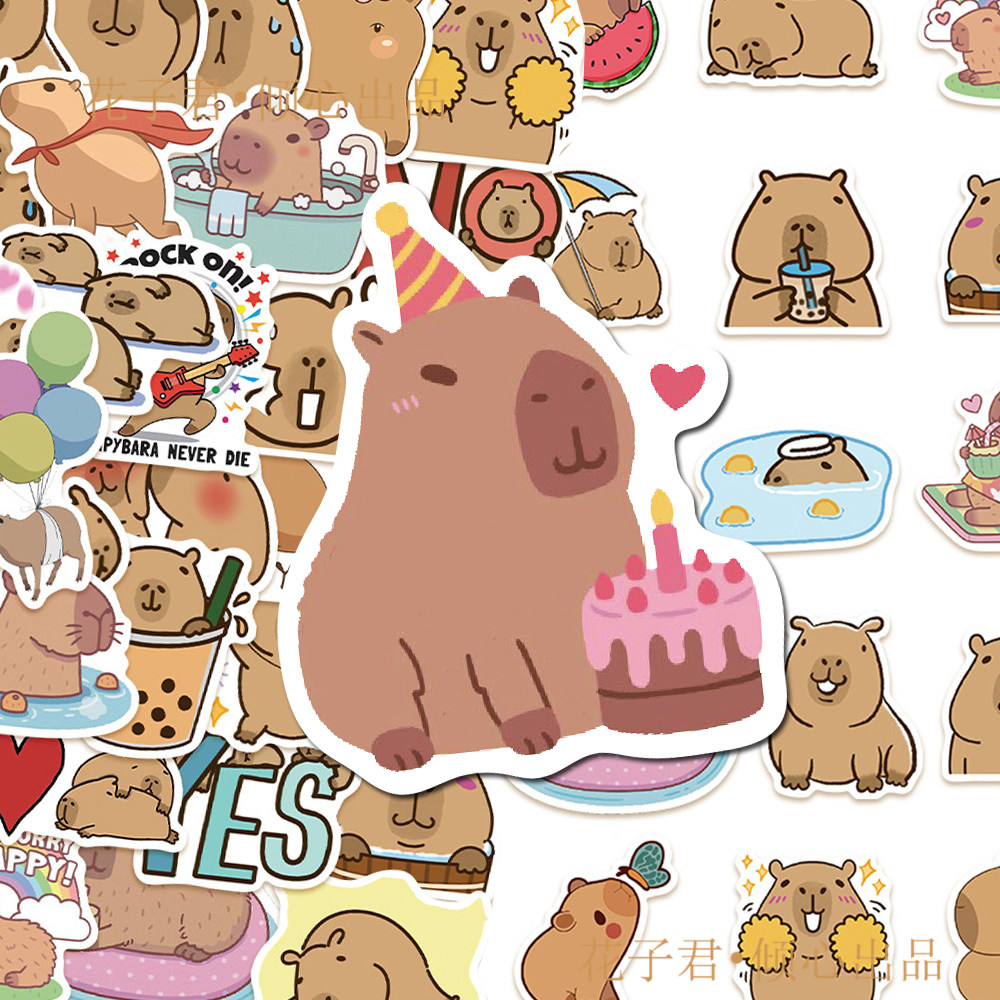 100张人气爆款水豚贴纸高颜值ins创意彩绘卡通涂鸦DIY装饰贴画