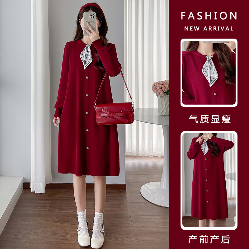 婧麒孕妇装秋冬连衣裙2025新款高级感孕妈穿搭裙子孕期法式穿搭冬