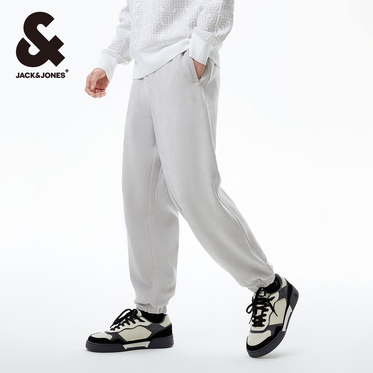 杰克琼斯冬季新款潮流舒适抽绳松紧腰头宽松束脚裤休闲卫裤男装