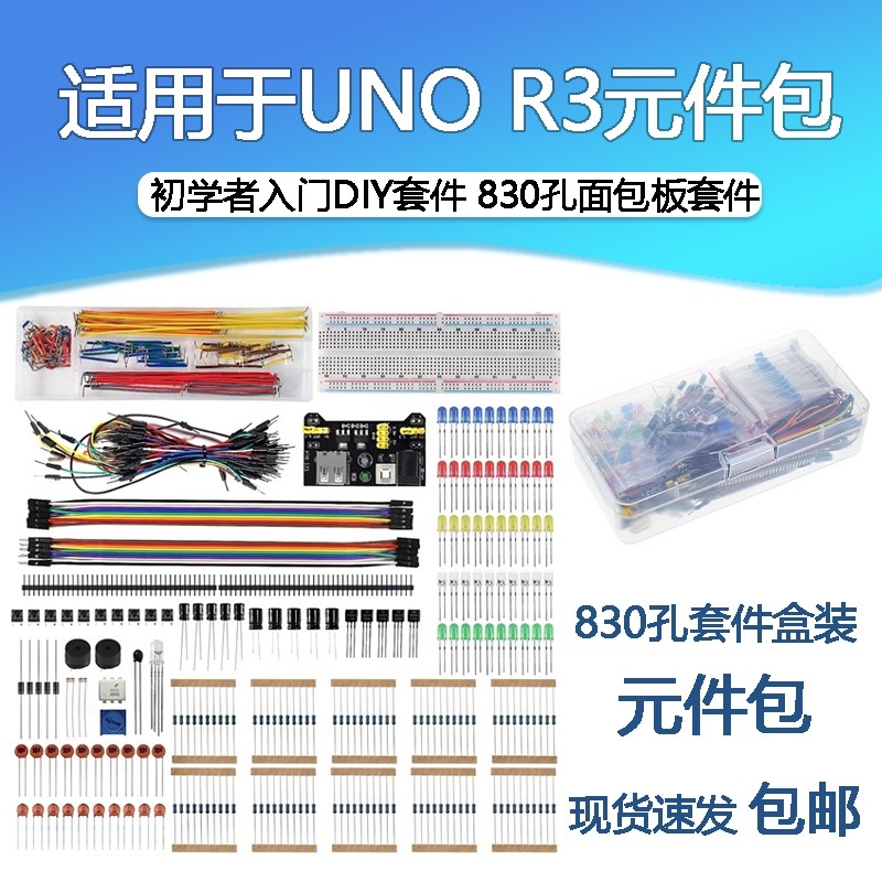 830孔面包板 适用UNO R3电子元件初学者入门DIY套件兼Arduino盒装