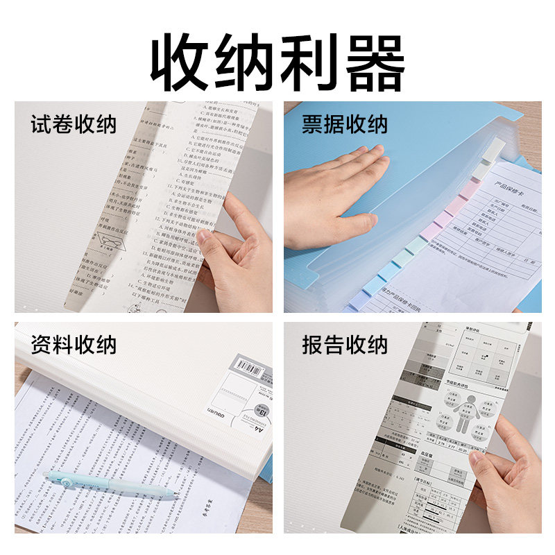 得力风琴包学生文件夹试卷收纳袋13格大容量文件袋多层插页透明a4试卷收纳整理卷子收纳袋小学初中高中生分类