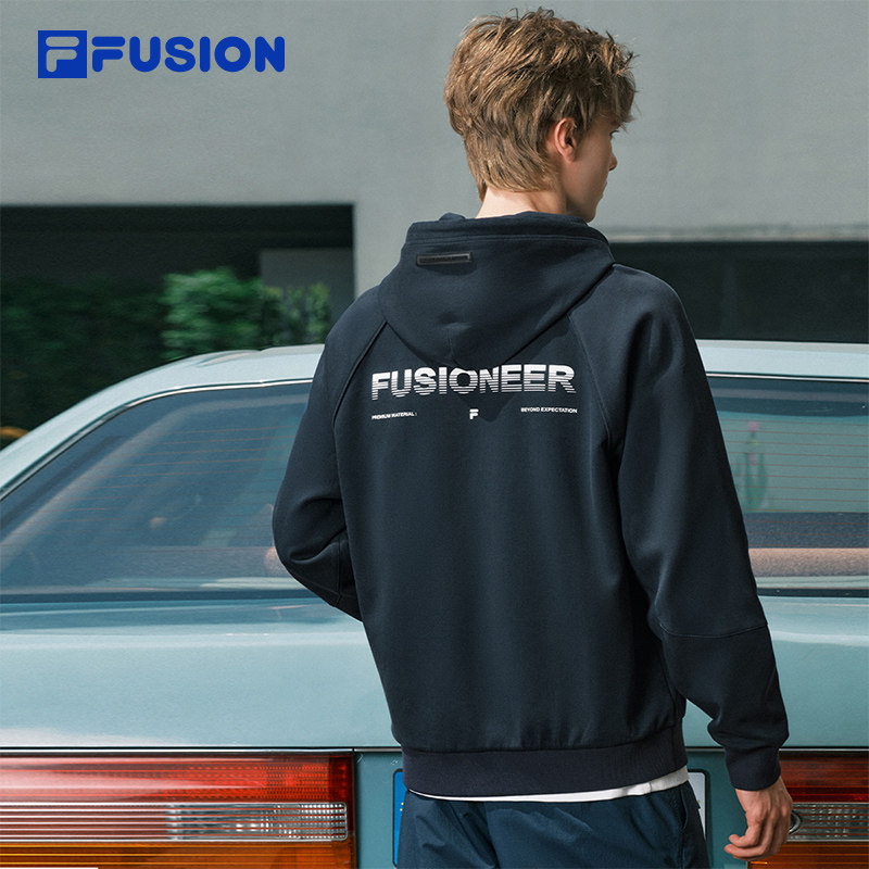 FILA FUSION斐乐潮牌针织连帽外套男2025秋新款时尚休闲宽松上衣