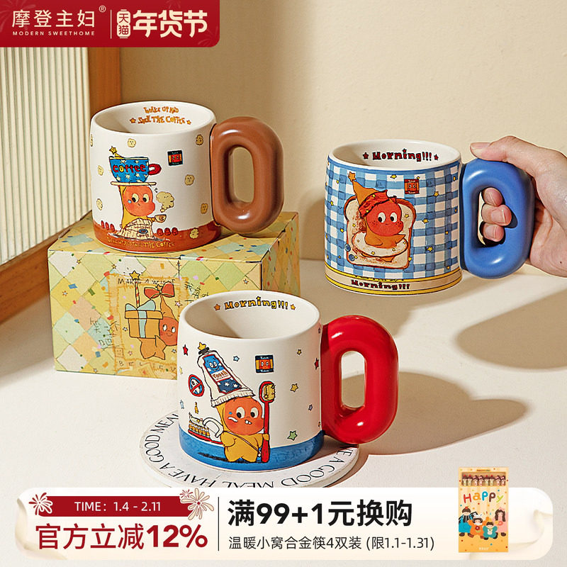 趣皿复古马克杯可爱陶瓷创意牛奶咖啡杯情侣水杯送女生礼物伴手礼
