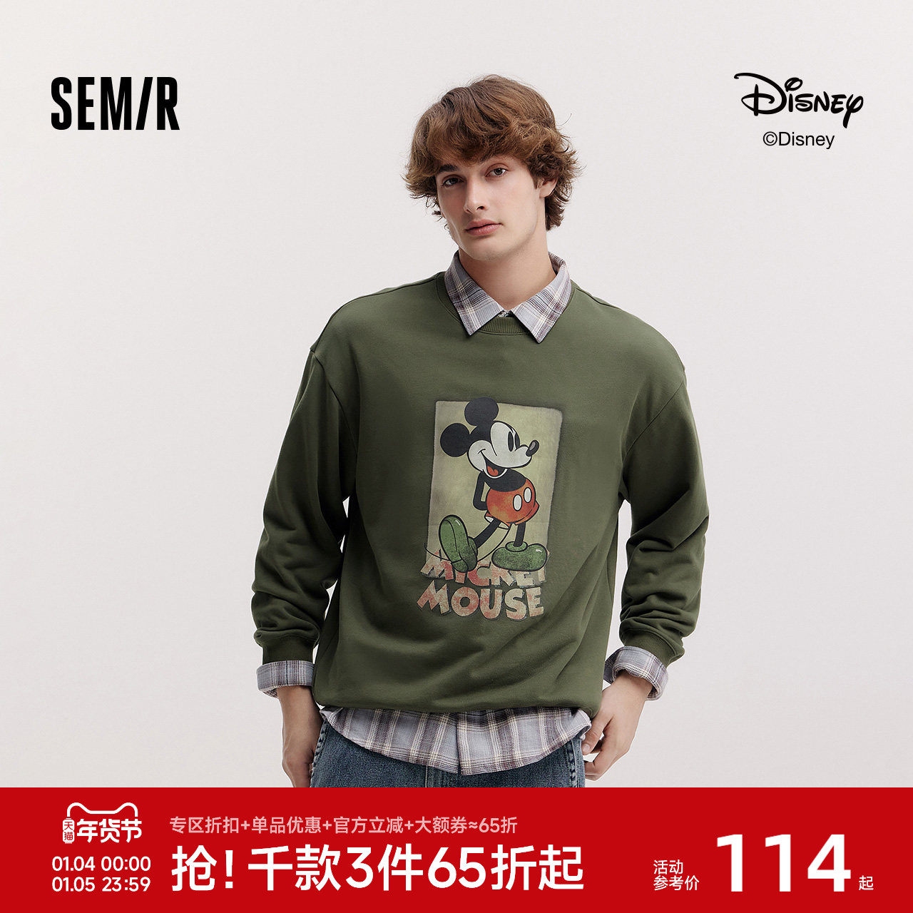 森马迪士尼合作系列卫衣男春宽松圆领字母绣花上衣情侣米奇印花服