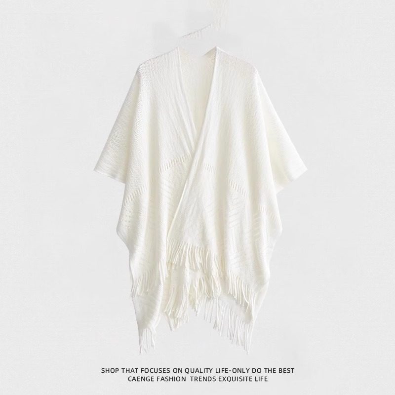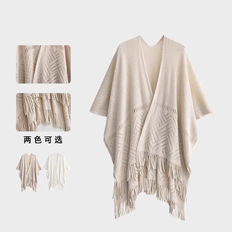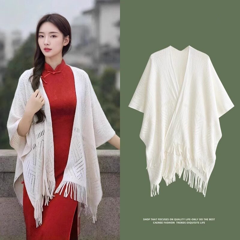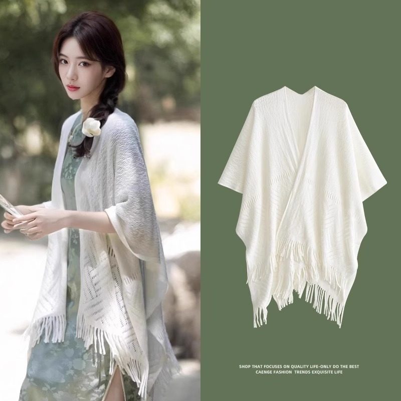 空调房2025薄款办公室夏季披肩女镂空春秋时尚外搭旗袍白色斗篷风