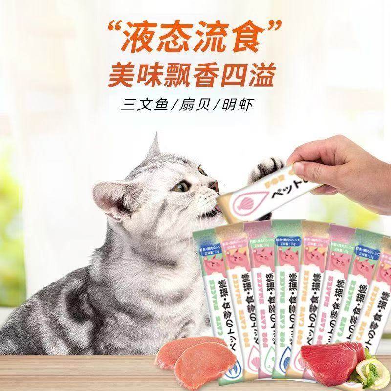 猫条100支猫咪零食罐头湿粮用品小鱼干猫罐头补水三文鱼鸡肉鱼油