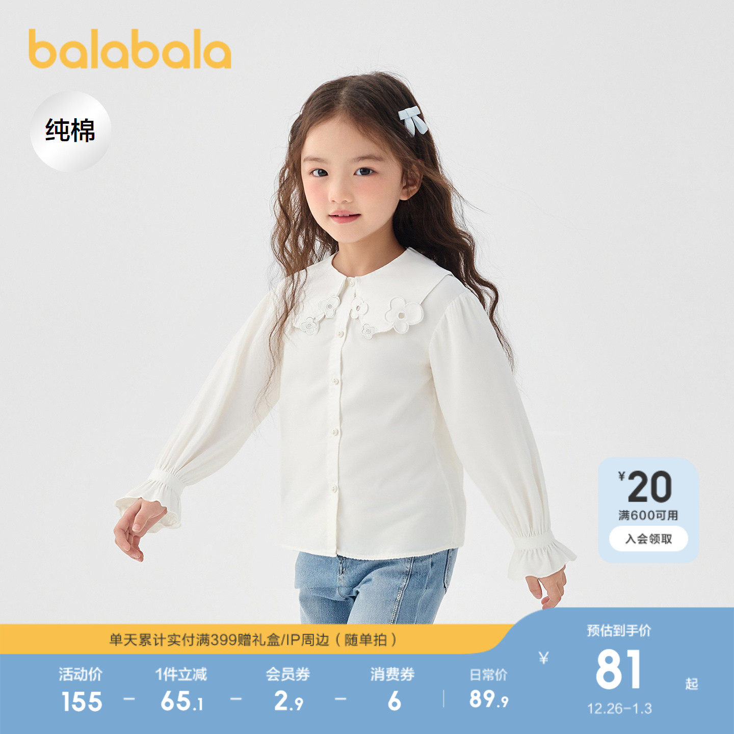巴拉巴拉童装儿童长袖衬衫女童秋装2025新款纯棉上衣百搭大童潮酷