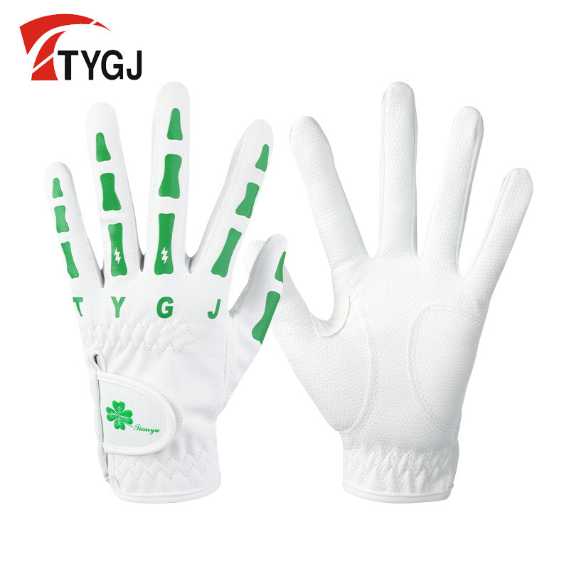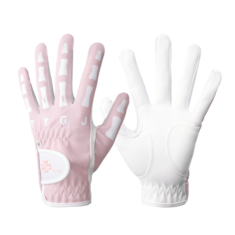 2双可包邮高尔夫球女士PU皮手套运动防滑透气骨头印花左右手1双