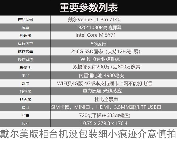 戴尔Venue 11 Pro 7140平板电脑10.8英寸windows10系统二合一网课