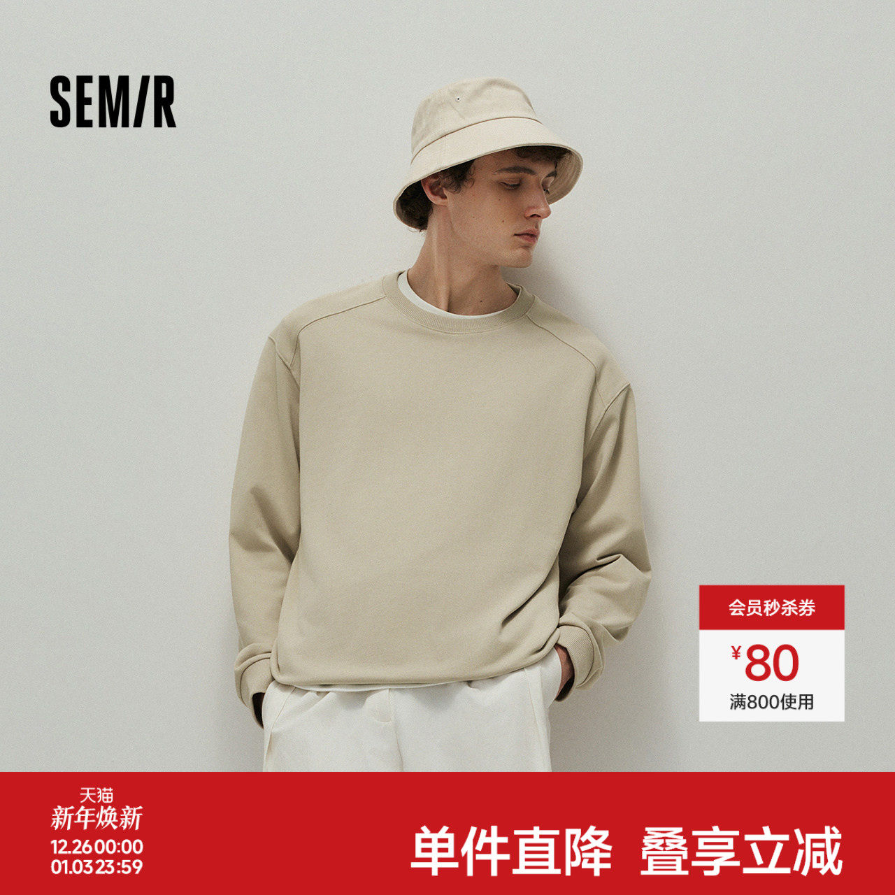 [商场同款]森马卫衣男纯色基础百搭圆领上衣2025新款秋装休闲通勤