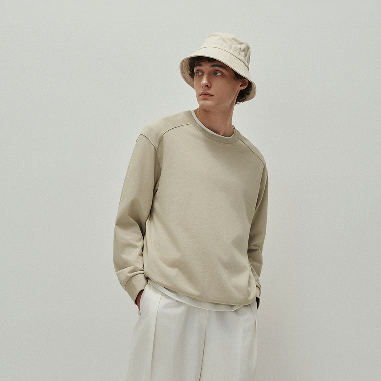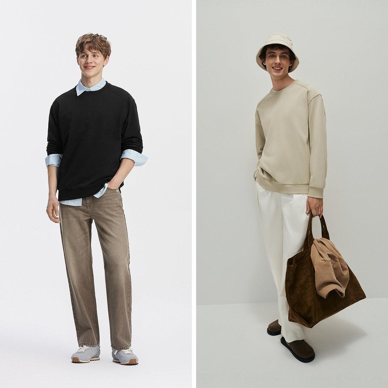 班尼路重磅卫衣男款秋季基础纯色圆领内搭男款宽松大码正肩套头衫