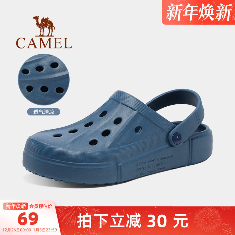 骆驼户外洞洞鞋男士夏季沙滩鞋2025新款软底防滑透气包头凉拖鞋男
