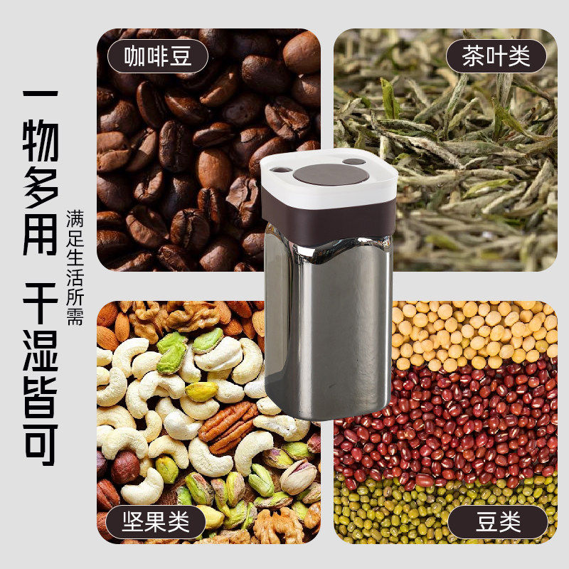 咖啡豆密封罐食品级玻璃罐咖啡粉茶叶保存罐收纳盒便携方形真空