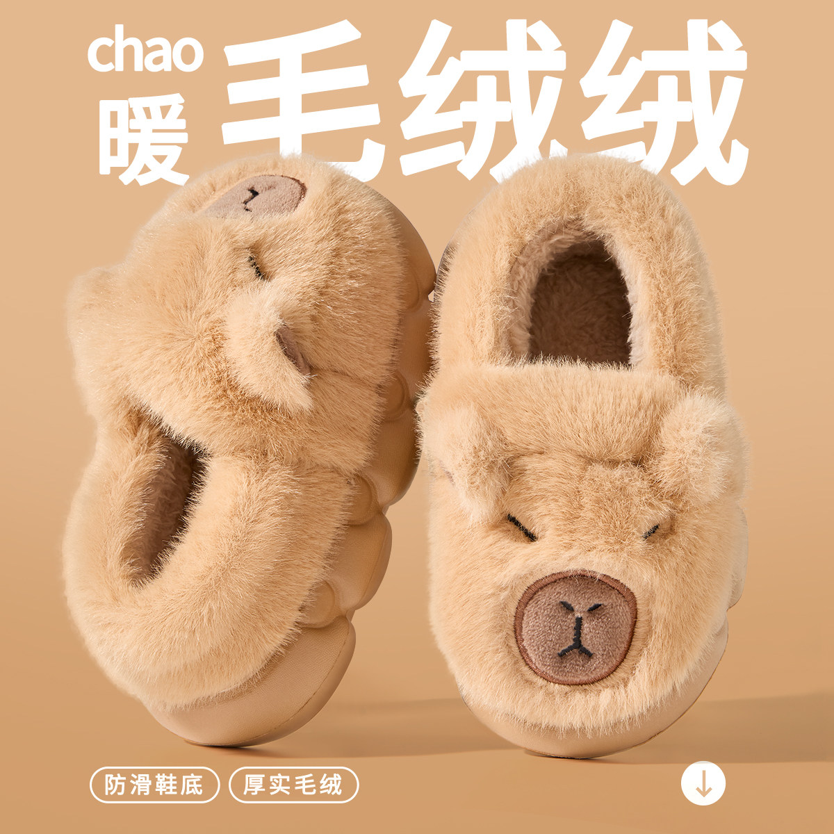 卡皮巴拉儿童棉拖鞋男童冬季青少年室内居家宝宝毛毛绒包跟棉拖鞋