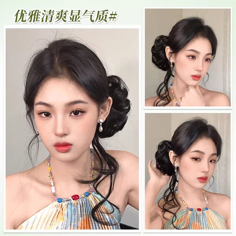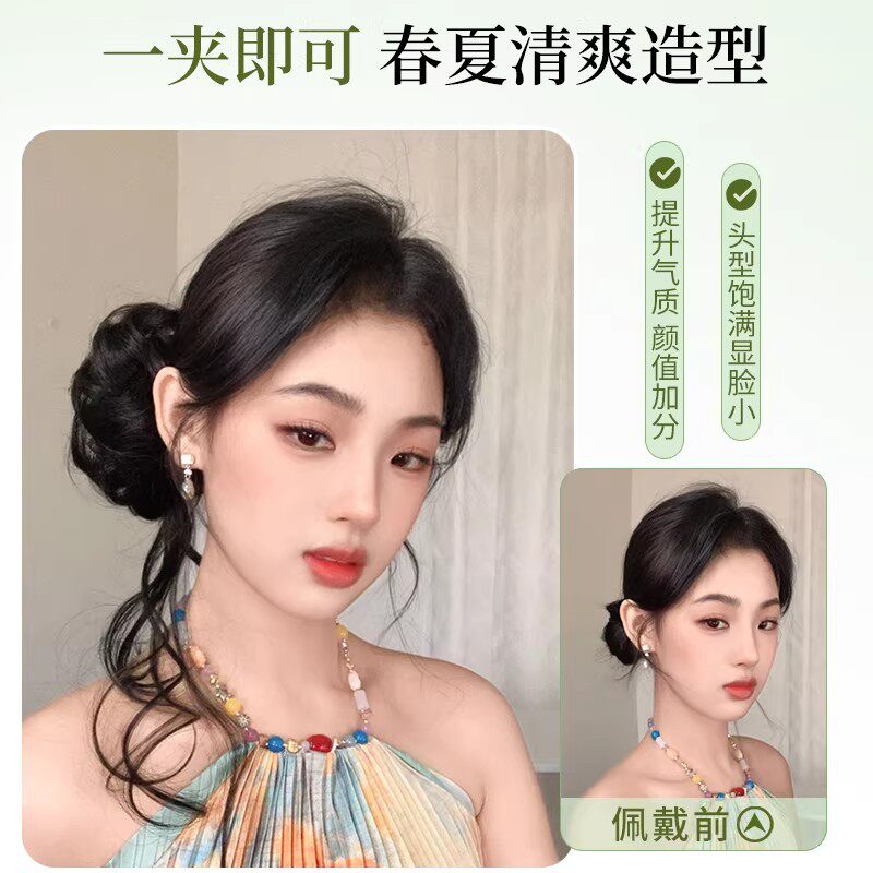 龙须丸子头假发抓夹温柔侧扎千金盘发神器蓬松增量彷真发包花苞头