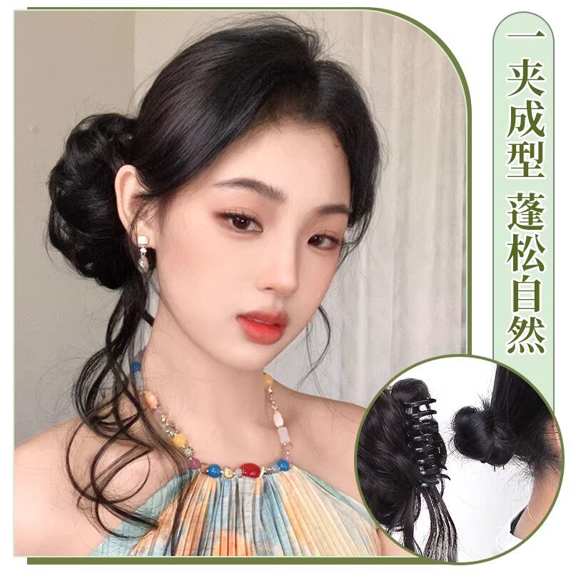 低扎丸子头假发鸡毛头抓夹盘发发包慵懒感造型头饰自然蓬松后脑勺