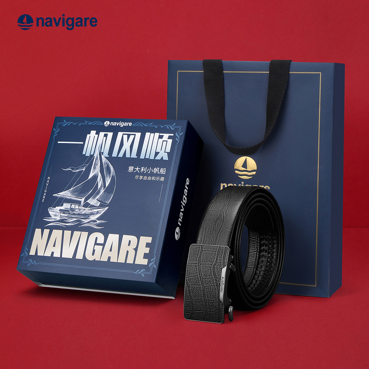 Navigare纳维凯尔意大利小帆船男真皮腰带自动扣内扣头层牛皮皮带