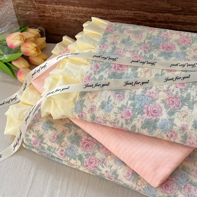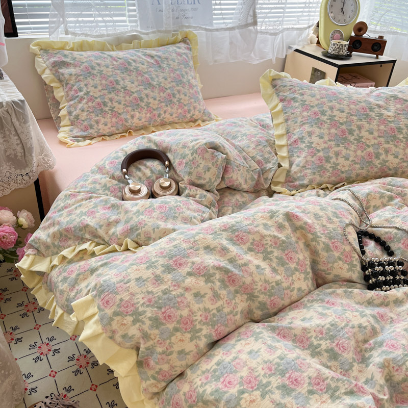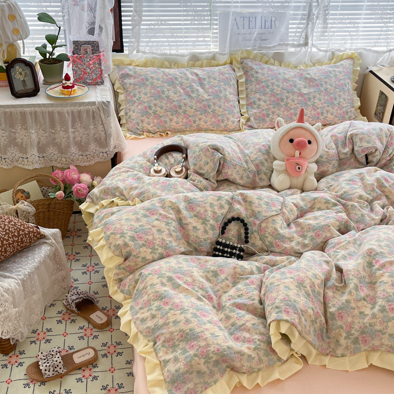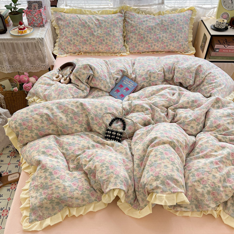 A类双层纱床上四件套纯棉全棉新款田园床单件被套被罩宿舍三件套4