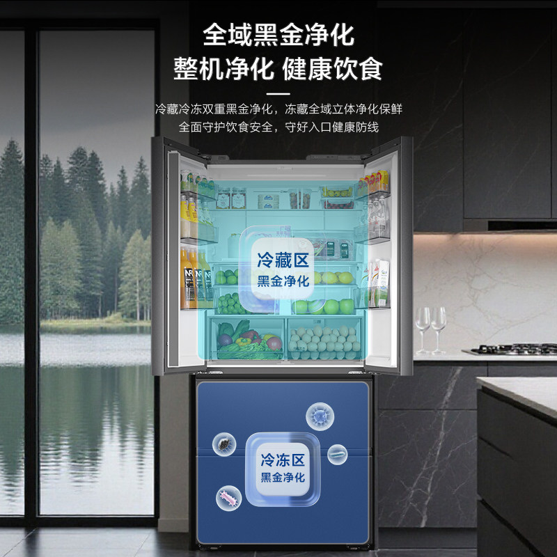 政府补贴美的M60机皇550零嵌入式双系统制冰冰箱家用法式双开四门