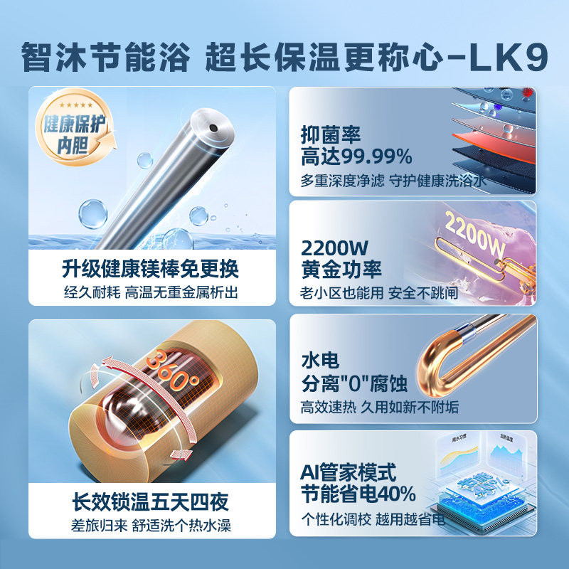 海尔电热水器家用卫生间一级能效速热节能储水式60升小型租房LK9
