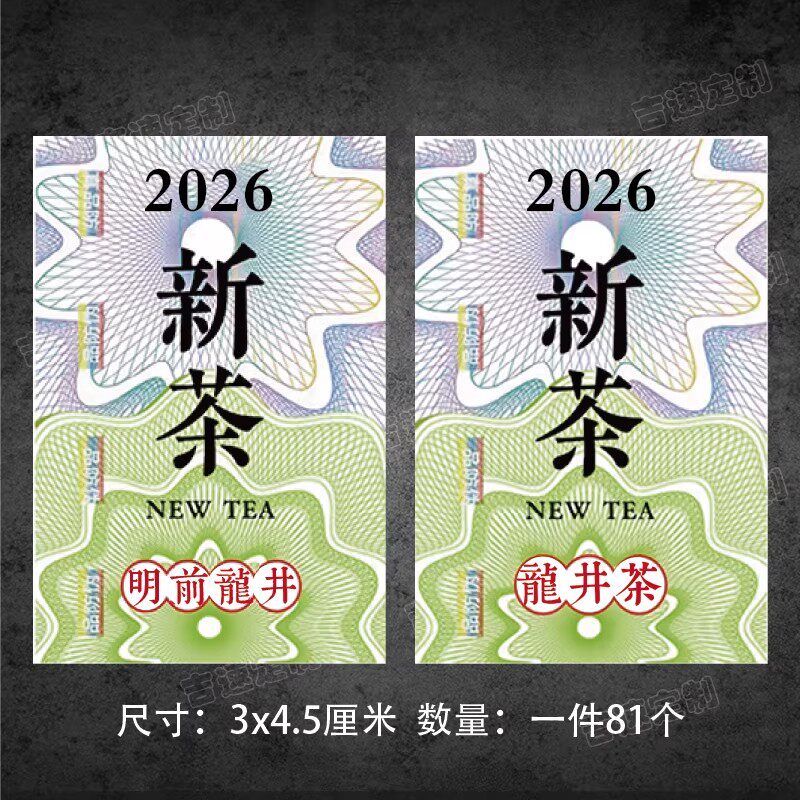 春茶2026新茶标签茶叶不干胶龙井茶明前茶绿茶碧螺春封口贴定制