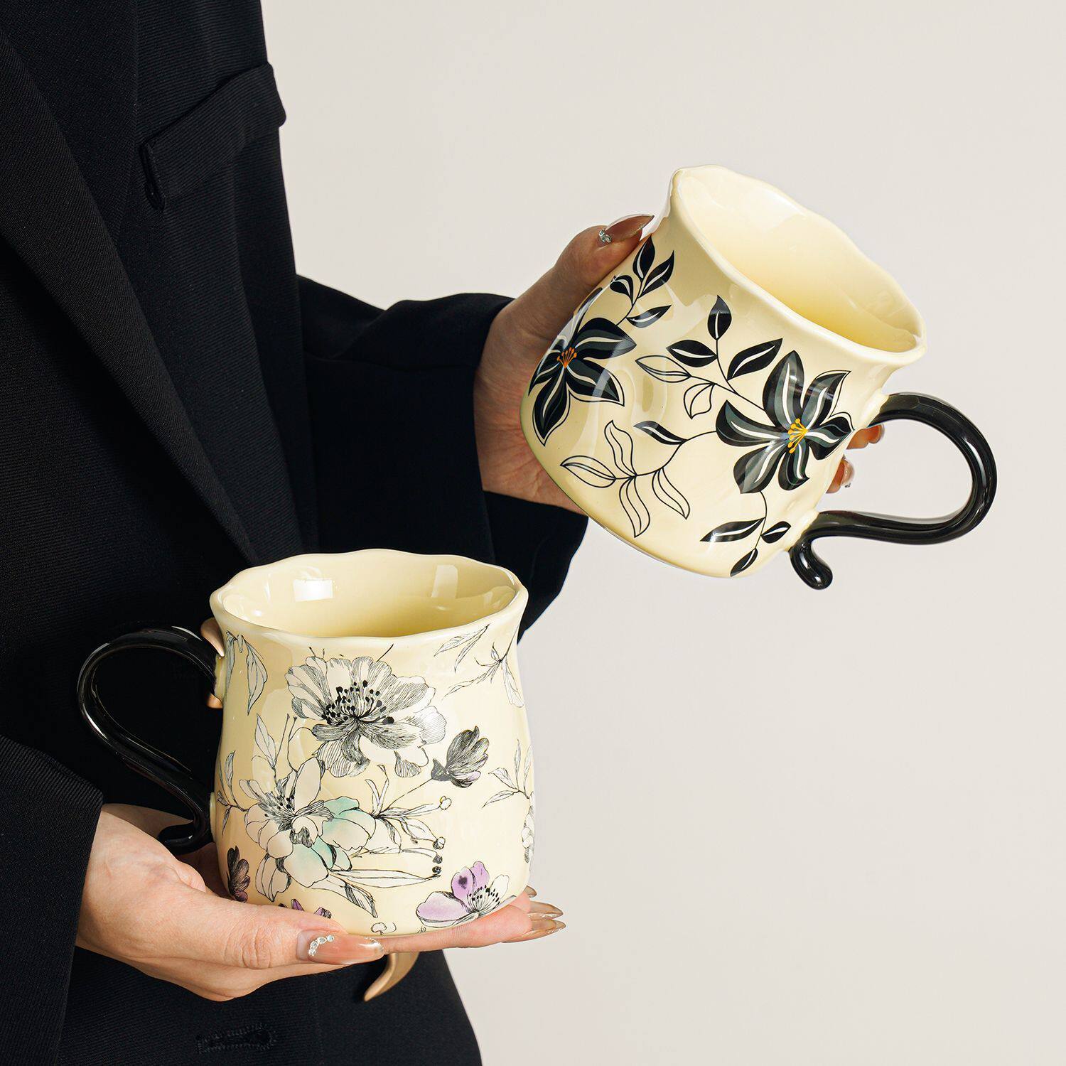 ins陶瓷杯高级感扭扭马克杯家用小众设计情侣咖啡杯女生喝水杯子