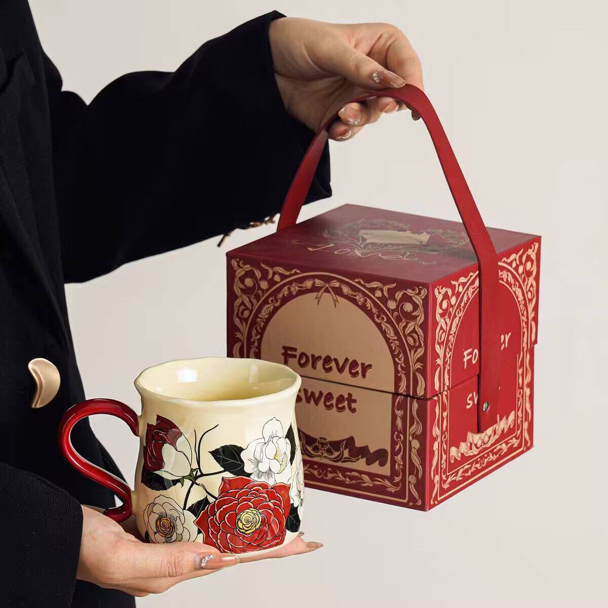 中古风马克杯小众设计感杯子新款家用办公室咖啡杯高颜值陶瓷水杯