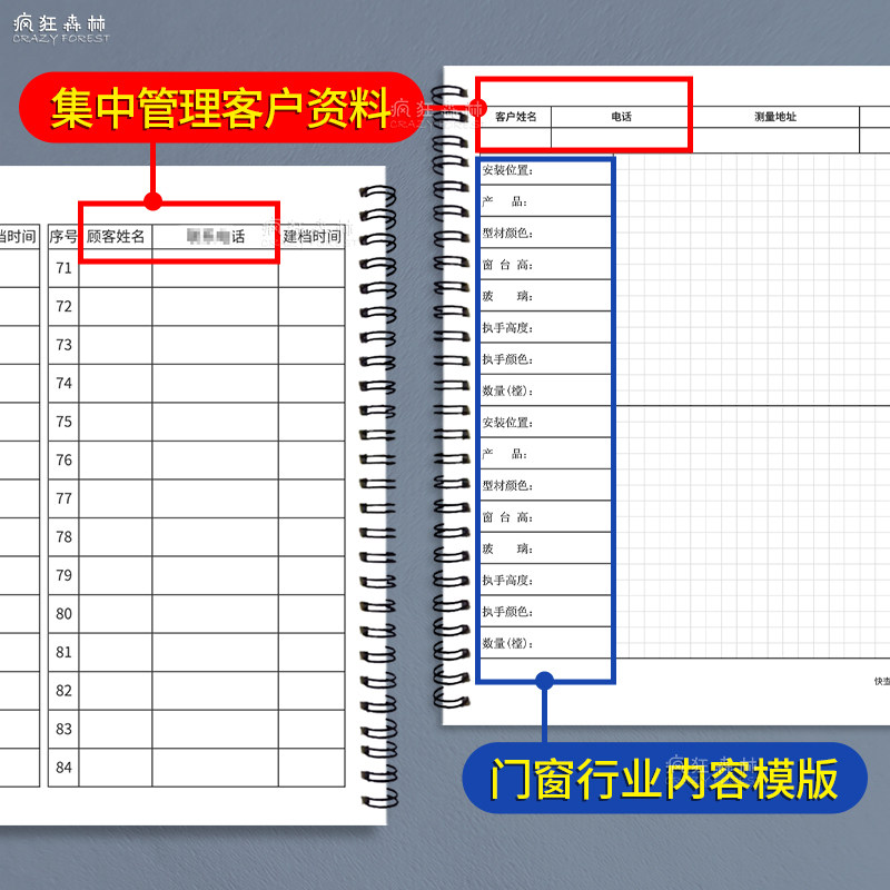 门窗测量专用本门窗量尺本量尺寸登记定制门窗量尺测量专用本做门做窗登记本设计师测量本全屋定制客户档案本